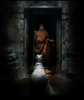 A fully angered Lord Sripada Sri Vallabha emerged from nowhere, with a Trident (Trishul) in His hand..